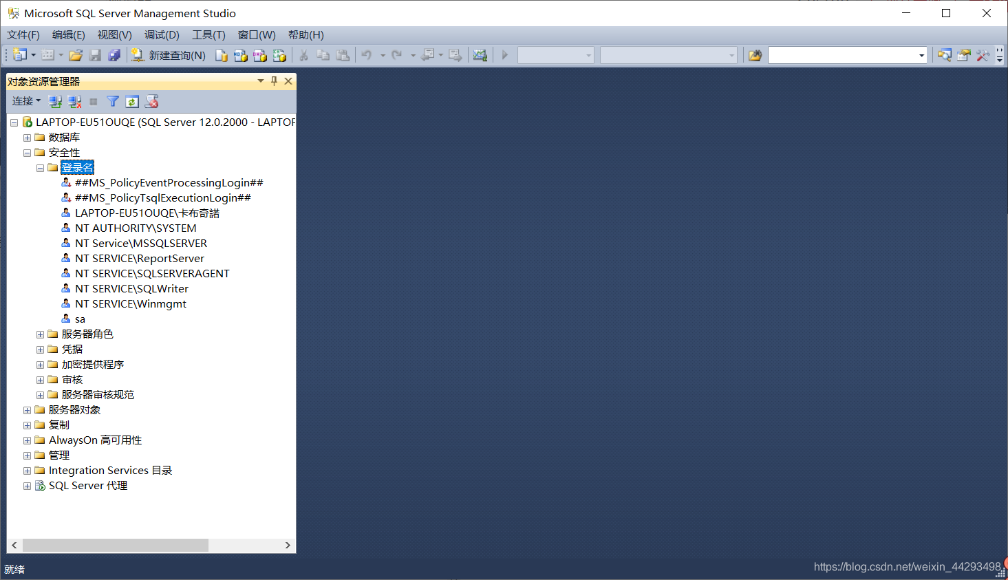 打开SQL Server Management Studio,连接 数据库引擎